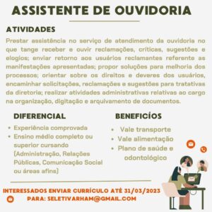 ATENÇÃO: Nunca pague nenhum valor para participar de um processo seletivo. Não compre cursos, apostilas ou serviços que prometam participação em seleção ou contratação para uma vaga. E jamais informe dados bancários, de cartão ou envie documentos por e-mail ou através de sites que não conheça.