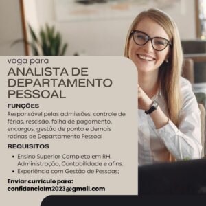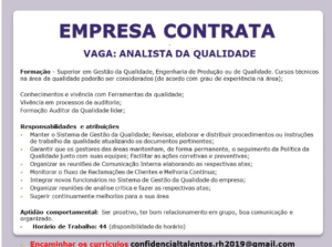 As vagas anunciadas e disponibilizadas neste site são repassadas por responsabilidade da empresa ou representante do RH. Não possuímos quaisquer vínculos com a empresa ou o anunciante. Temos o único objetivo de repassar para a população o benefício de visitar gratuitamente o nosso site, com o intuito de alcançarem o tão sonhado emprego.