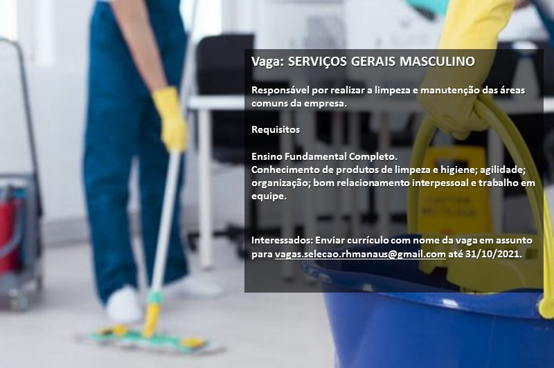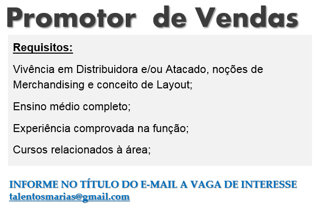 As vagas anunciadas e disponibilizadas neste site são repassadas por responsabilidade da empresa ou representante do RH. Não possuímos quaisquer vínculos com a empresa ou o anunciante. Temos o único objetivo de repassar para a população o benefício de visitar gratuitamente o nosso site, com o intuito de alcançarem o tão sonhado emprego.