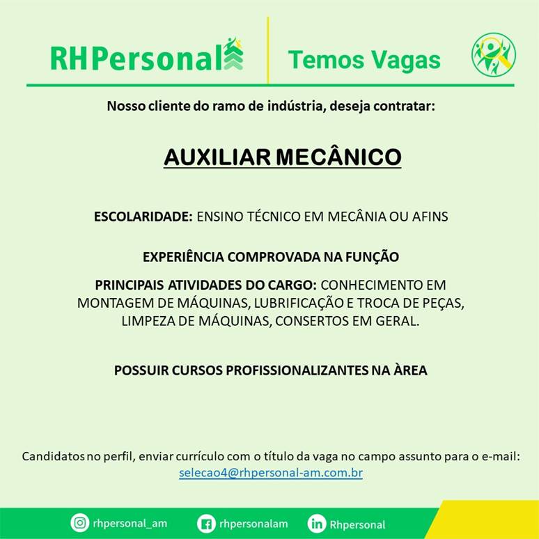 Mais informações sobre a vaga, somente por e-mail com os contratantes. Boa sorte !!!🍀