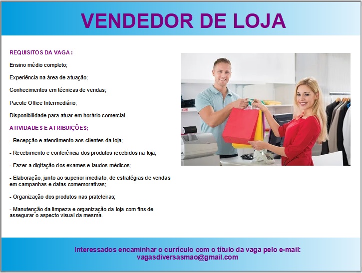 Mais informações sobre a vaga, somente por e-mail com os contratantes. Boa sorte !!!🍀