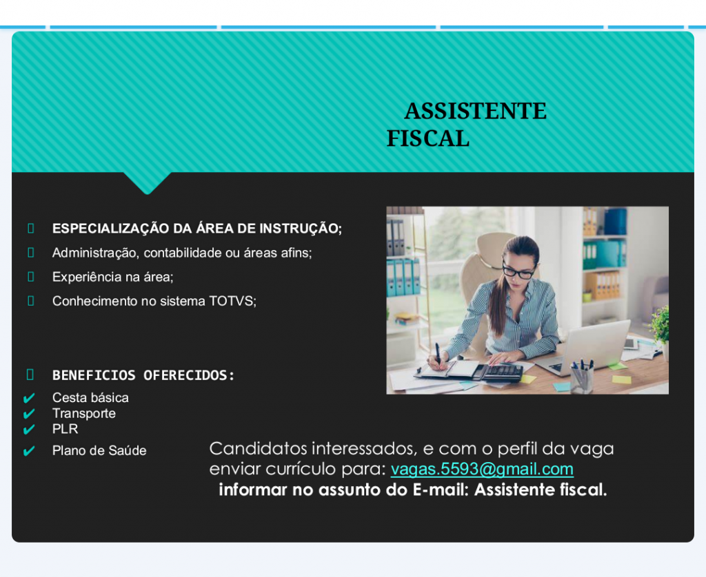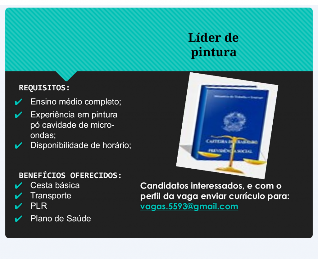 Mais informações sobre a vaga, somente por e-mail com os contratantes. Boa sorte !!!🍀