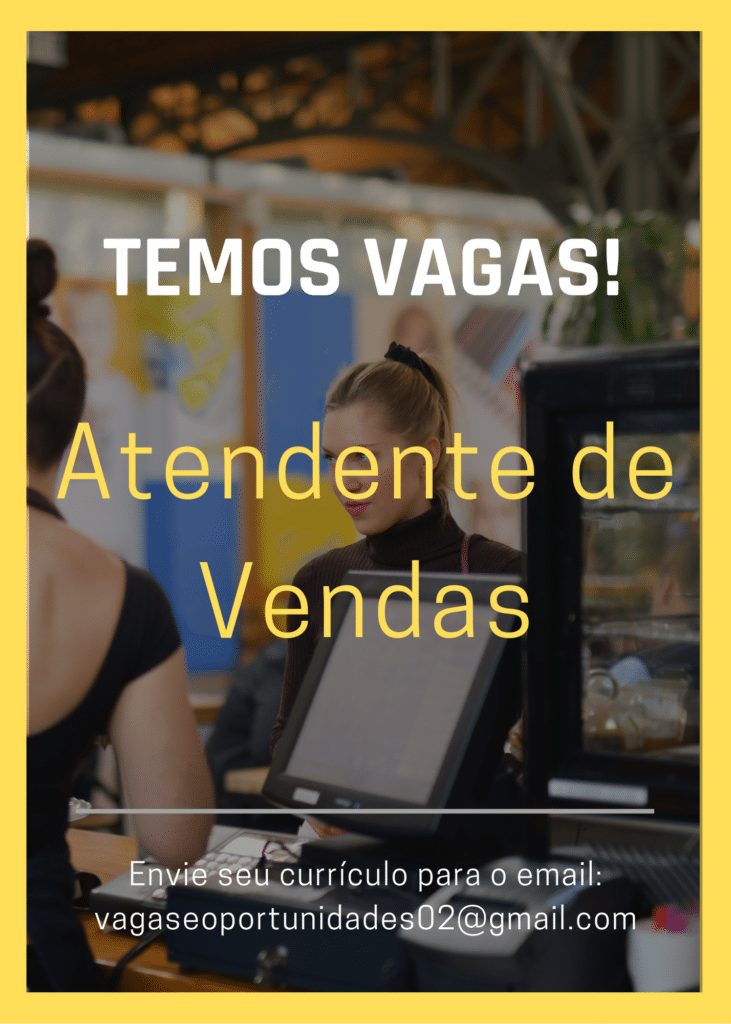As vagas anunciadas e disponibilizadas neste site são repassadas por responsabilidade da empresa ou representante do RH. Não possuímos quaisquer vínculos com a empresa ou o anunciante. Temos o único objetivo de repassar para a população o benefício de visitar gratuitamente o nosso site, com o intuito de alcançarem o tão sonhado emprego.
