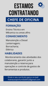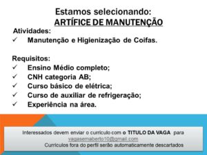 Mais informações sobre a vaga, somente por e-mail com os contratantes. Boa sorte !!!🍀