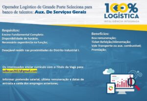 As vagas anunciadas e disponibilizadas neste site são repassadas por responsabilidade da empresa ou representante do RH. Não possuímos quaisquer vínculos com a empresa ou o anunciante. Temos o único objetivo de repassar para a população o benefício de visitar gratuitamente o nosso site, com o intuito de alcançarem o tão sonhado emprego.