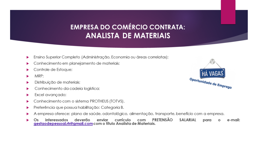 Mais informações sobre a vaga, somente por e-mail com os contratantes. Boa sorte !!!🍀