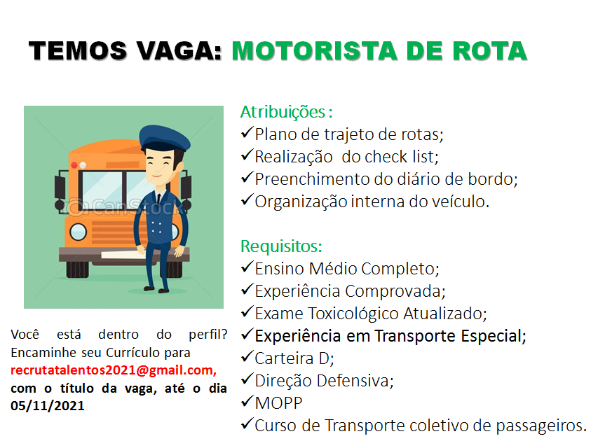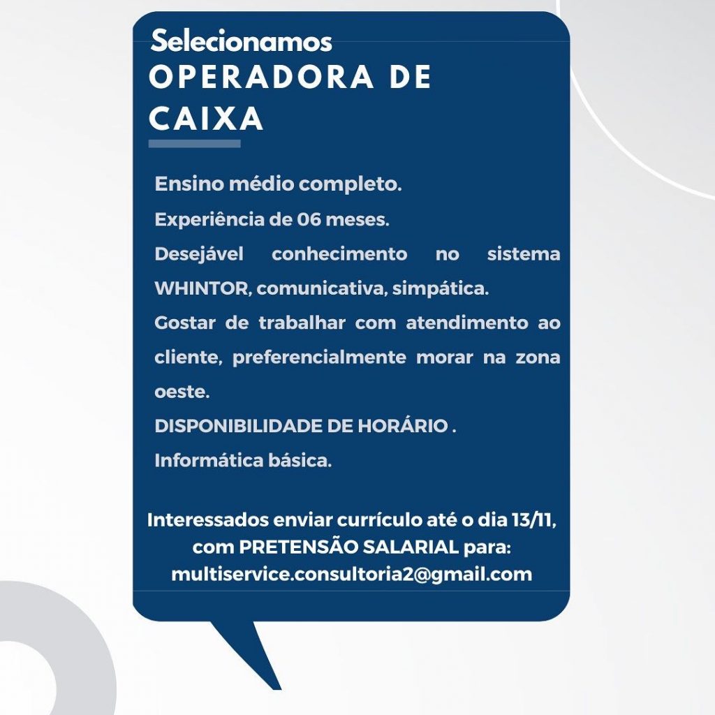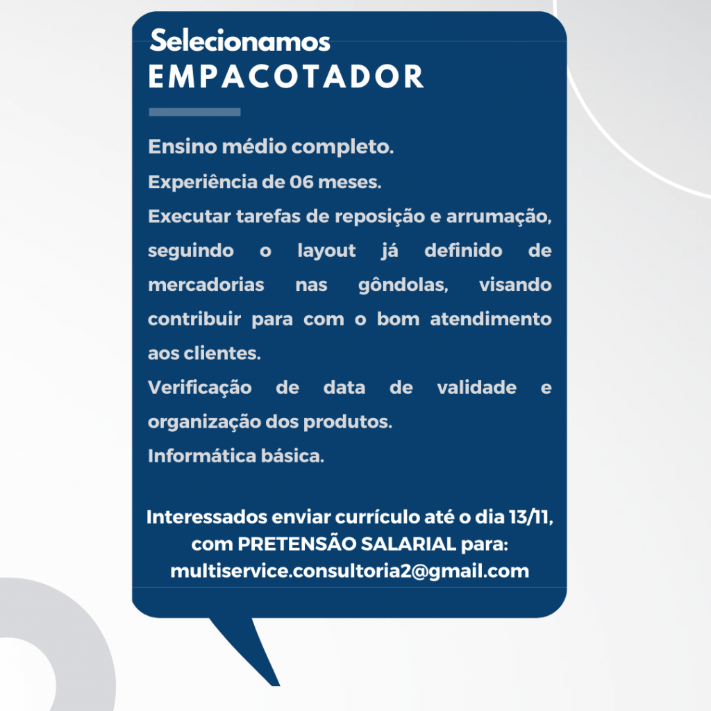 As vagas anunciadas e disponibilizadas neste site são repassadas por responsabilidade da empresa ou representante do RH. Não possuímos quaisquer vínculos com a empresa ou o anunciante. Temos o único objetivo de repassar para a população o benefício de visitar gratuitamente o nosso site, com o intuito de alcançarem o tão sonhado emprego.