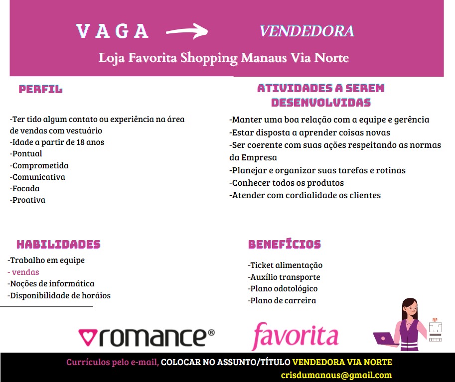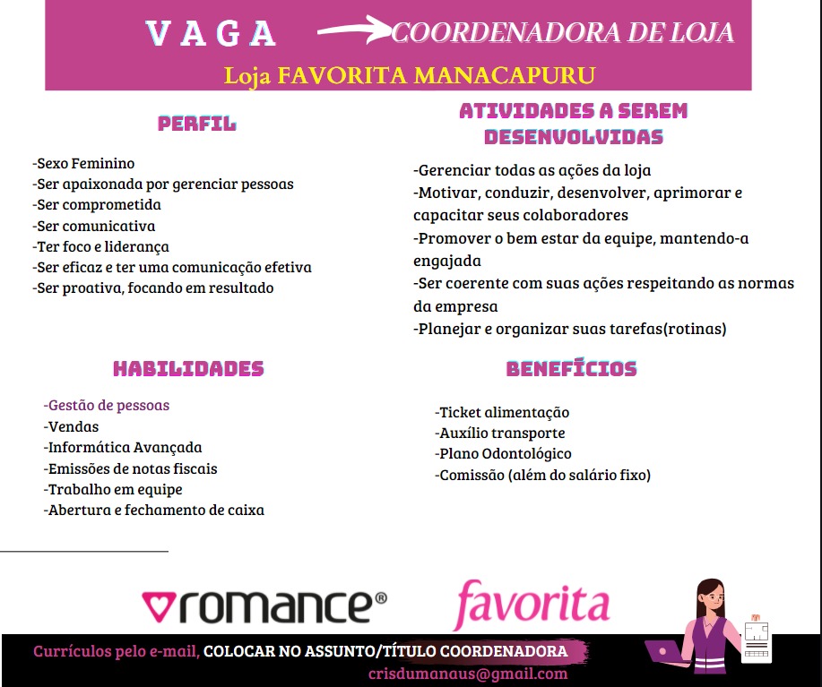 Estamos recebendo currículo para diversas funções confira e participe da seleção: – Emprego Day – AM
