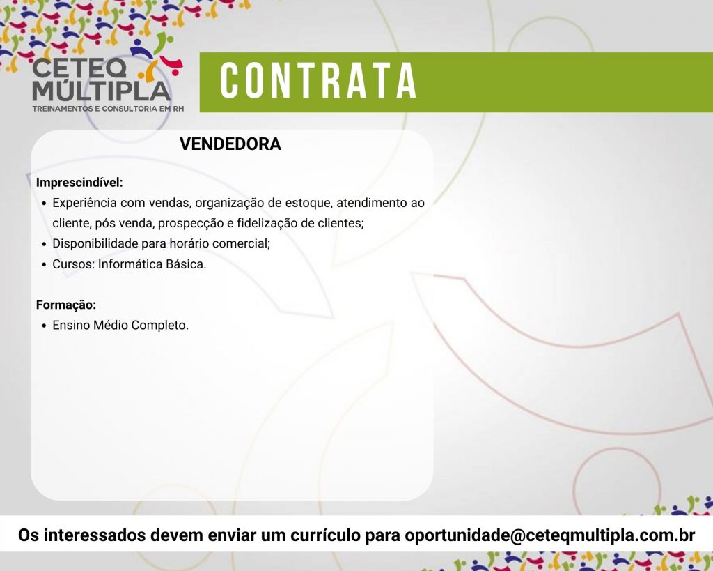 Estamos recebendo currículo para diversas funções confira e participe da seleção: