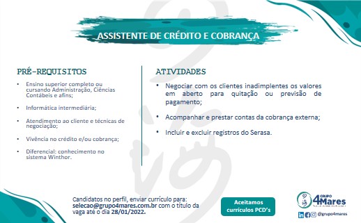Estamos recebendo currículo para diversas funções confira e participe da seleção!!; – Emprego Day – AM