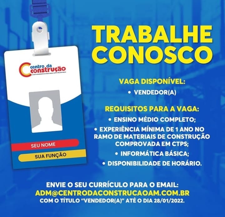 Estamos recebendo currículo para diversas funções confira e participe da seleção: – Emprego Day – AM