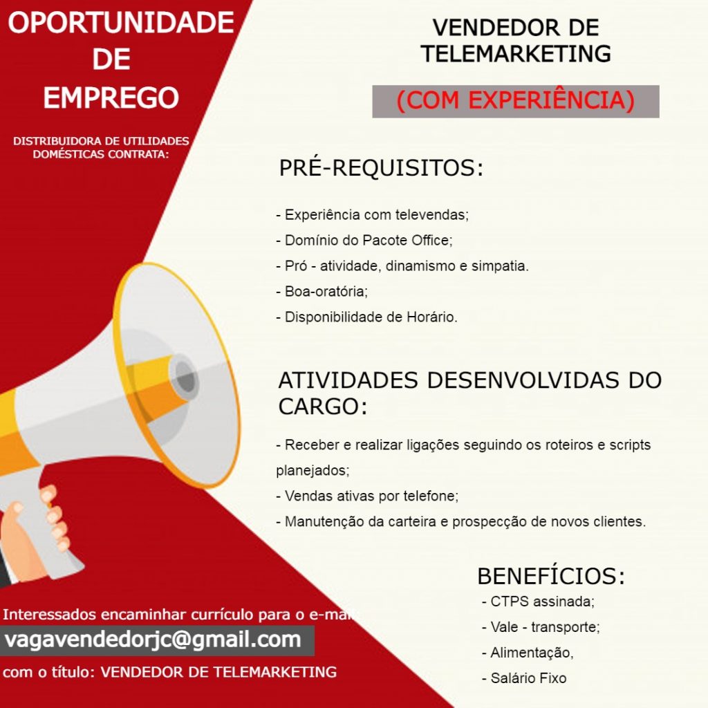 As vagas anunciadas e disponibilizadas neste site são repassadas por responsabilidade da empresa ou representante do RH. Não possuímos quaisquer vínculos com a empresa ou o anunciante. Temos o único objetivo de repassar para a população o benefício de visitar gratuitamente o nosso site, com o intuito de alcançarem o tão sonhado emprego.