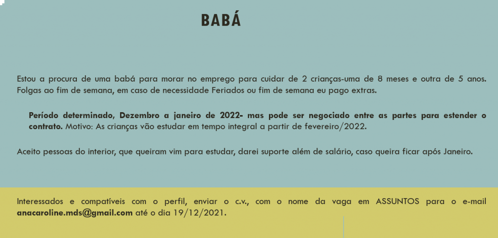 Mais informações sobre a vaga, somente por e-mail com os contratantes. Boa sorte !!!🍀