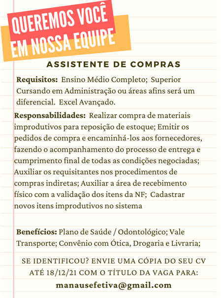 Estamos recebendo currículo para diversas funções confira e participe das vagas… – Emprego Day – AM
