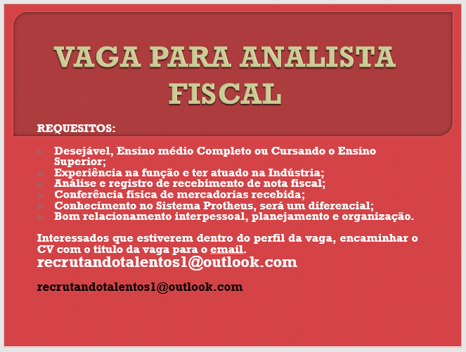 Mais informações sobre a vaga, somente por e-mail com os contratantes. Boa sorte !!!🍀