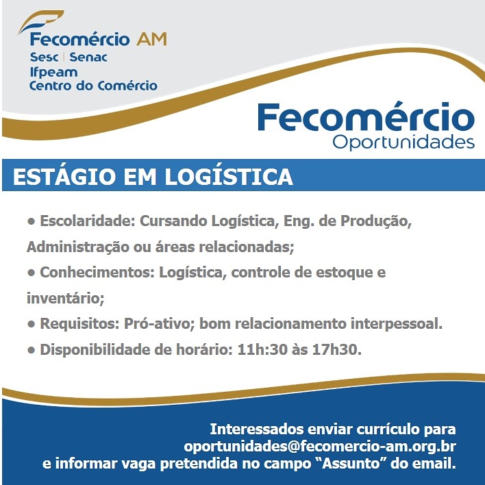 – Cursando o ensino superior a partir do 2° período de Administração,Logística ou áreas afins