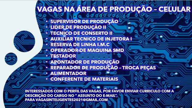 Estamos recrutando novos profissionais na área da produção: – Emprego Day – AM