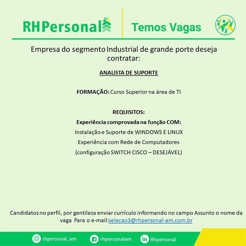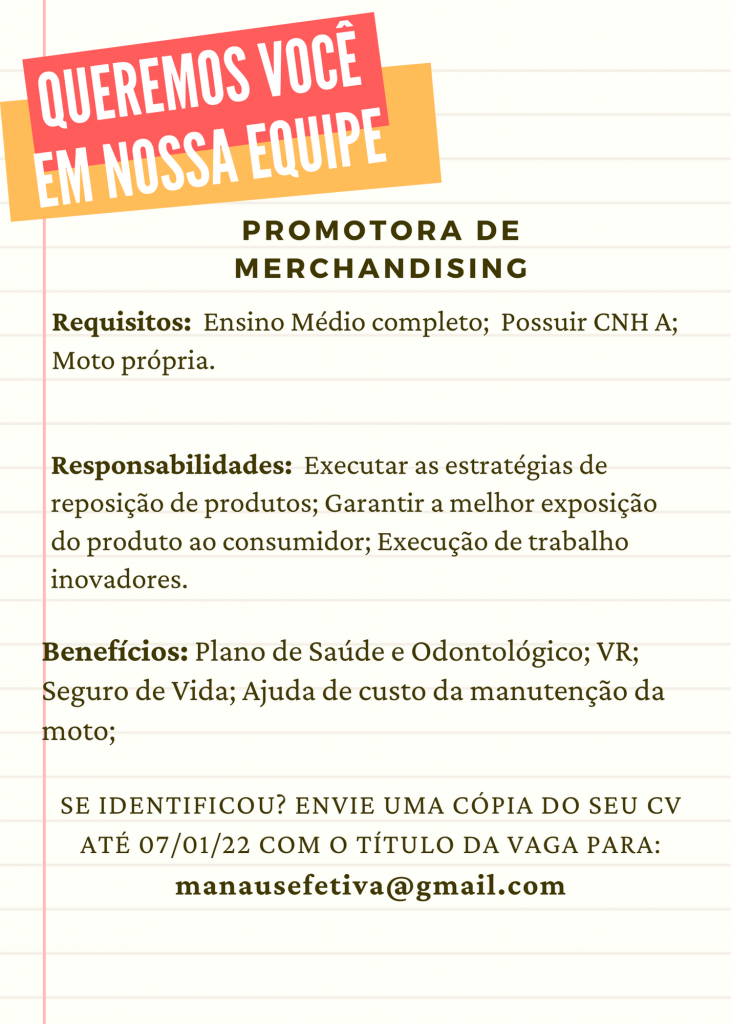 Estamos recrutando novos profissionais para compor nosso quadro de funcionários: – Emprego Day – AM
