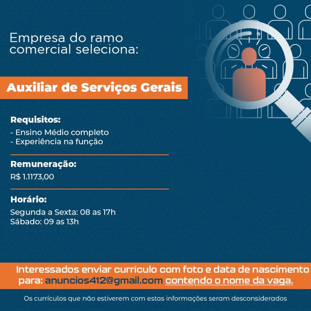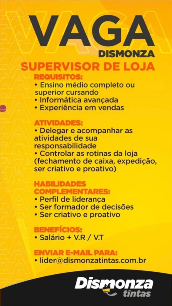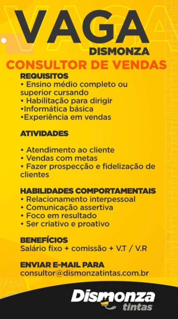 EXPEDIDOR/ SUPERVISOR DE LOJA/ CONSULTOR DE VENDAS/ ANALISTA DE DEPARTAMENTO PESSOAL/ AUXILIAR DE SERVIÇOS GERAIS/ MOTORISTA DE CAMINHÃO. Anúncios Related Posts 20 Vagas de Emprego Fáceis de Conseguir na Europa em Como Se Inscrever nas Vagas e Dicas para Aumentar Suas Chances de Ser Contratado na Europa Como se Registrar em Sites Internacionais que Pagam em Dólar ou Euro: Guia Completo para Iniciar Sua Renda Global anteriorEstamos fazendo seleção para a vaga de:próximoAgente de campo/ Assistente administrativo/ Assistente Fiscal/ Gerente de loja/ Auxiliar de logística e Costureira .