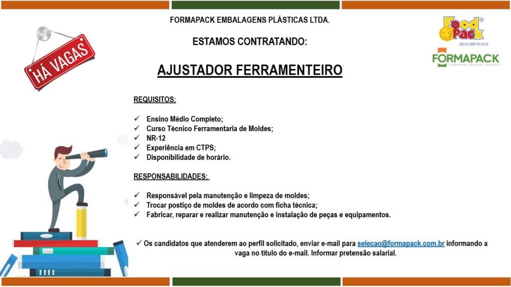 FORMAPAC ESTÁ RECRUTANDO NOVOS PROFISSIONAIS PARA COMPOR SEU QUADRO DE FUNCIONÁRIOS.