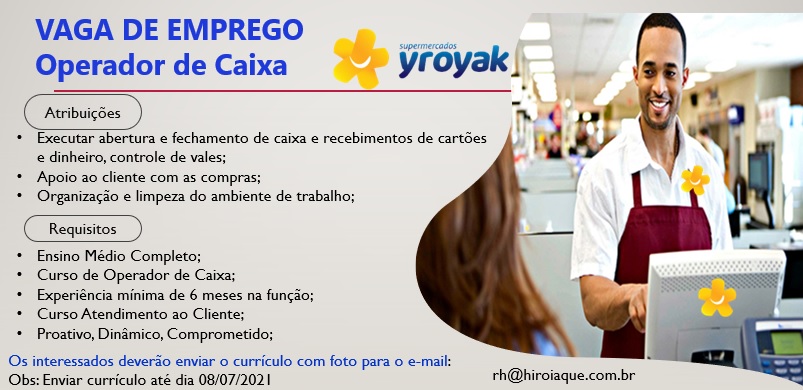 As vagas anunciadas e disponibilizadas neste site são repassadas por responsabilidade da empresa ou representante do RH. Não possuímos quaisquer vínculos com a empresa ou o anunciante. Temos o único objetivo de repassar para a população o benefício de visitar gratuitamente o nosso site, com o intuito de alcançarem o tão sonhado emprego.