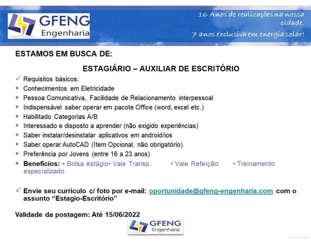 Mais informações sobre a vaga, somente por e-mail com os contratantes. Boa sorte !!!🍀