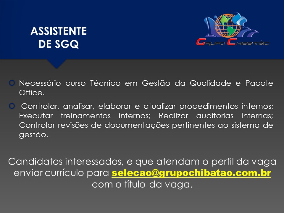 Grupo Chibatão está recrutando novos profissionais para compor seu quadro de funcionários.