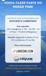 GRUPO CIDADE ESTÁ RECRUTANDO PROFISSIONAIS PARA: