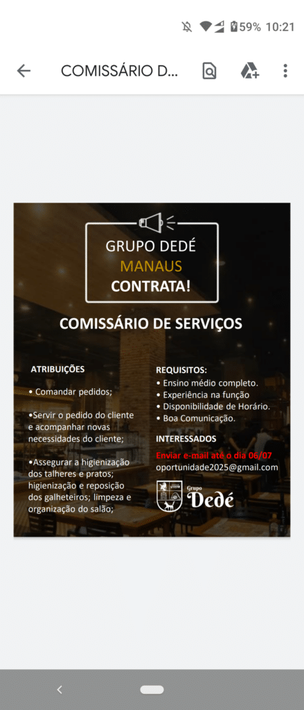 GRUPO DEDÉ ESTÁ RECRUTANDO NOVOS PROFISSIONAIS PARA COMPOR SEU QUADRO DE FUNCIONÁRIOS: – Emprego Day – AM