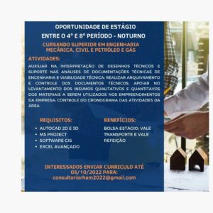 Mais informações sobre a vaga, somente por e-mail com os contratantes. Boa sorte !!!🍀