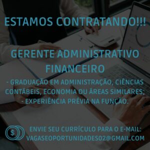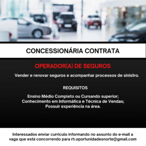 As vagas anunciadas e disponibilizadas neste site são repassadas por responsabilidade da empresa ou representante do RH. Não possuímos quaisquer vínculos com a empresa ou o anunciante. Temos o único objetivo de repassar para a população o benefício de visitar gratuitamente o nosso site, com o intuito de alcançarem o tão sonhado emprego.