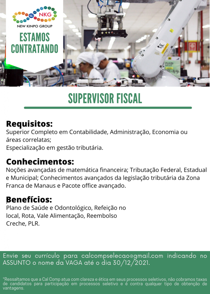 Industria Cal Comp está recrutando novos profissionais para compor seu quadro de funcionários; – Emprego Day – AM