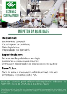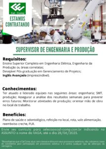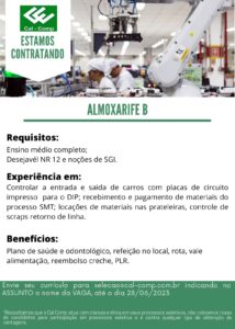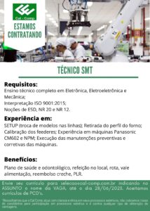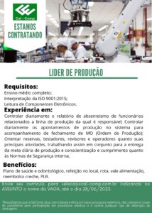 INDÚSTRIA CAL COMP ESTA RECRUTANDO PROFISSIONAIS PARA COMPOR SEU QUADRO DE FUNCIONÁRIOS: