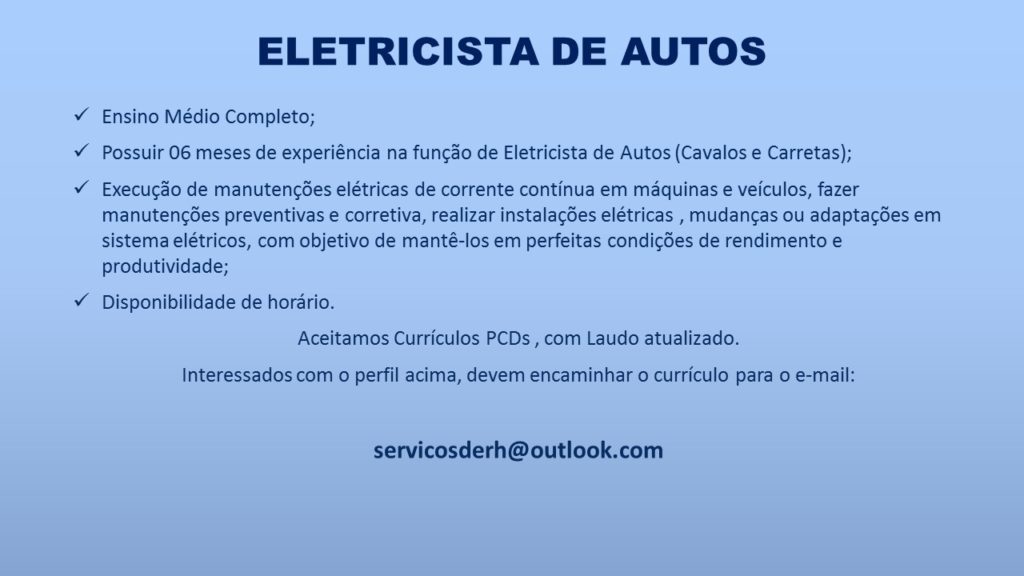 Mais informações sobre a vaga, somente por e-mail com os contratantes. Boa sorte !!!🍀