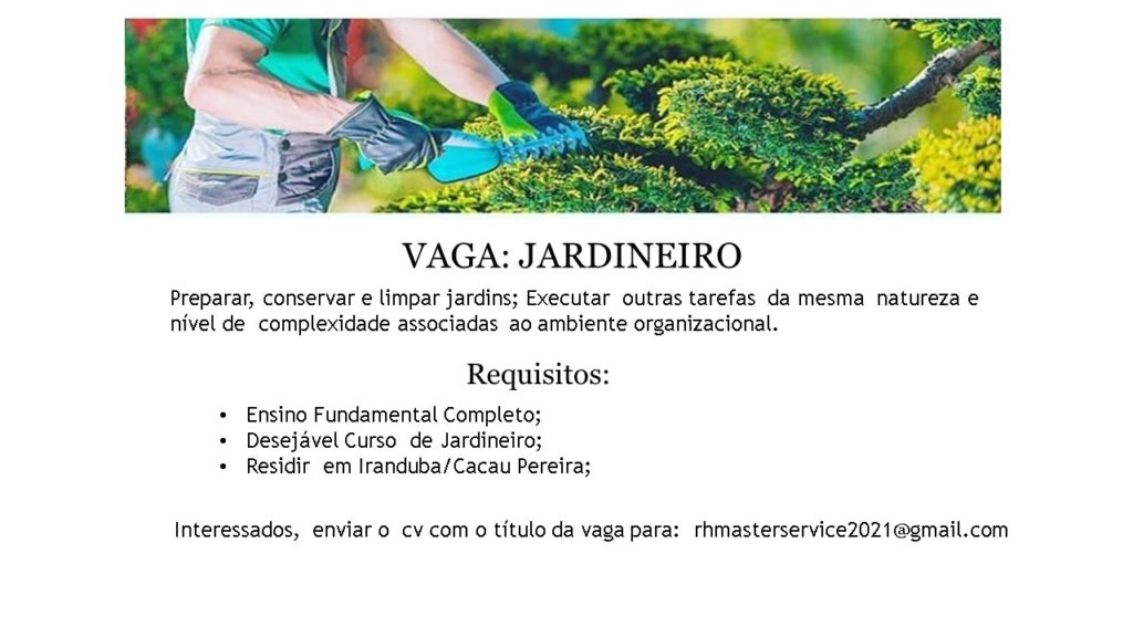 JARDINEIRO, AJUDANTE DE PRODUÇÃO, SUPERVISOR DE PRODUÇÃO, ELETRICISTA DE AUTOS .. – Emprego Day – AM