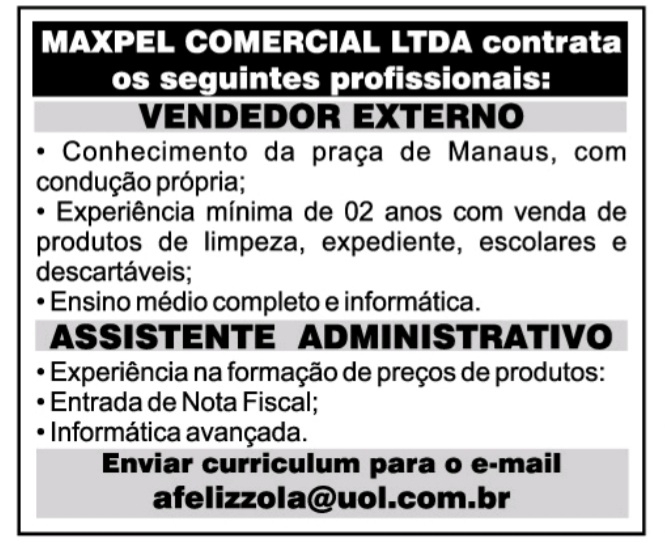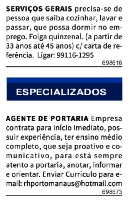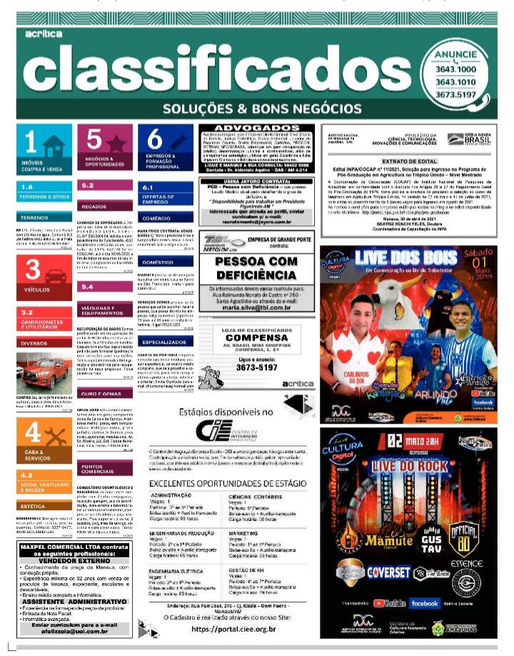 Jornal Acrítica Classificados de Empregos do dia 01.05.21 (sábado), Edição: 25.175/21 Confira as Oportunidades e Envie seu Curriculo. Anúncios 🔰🔰 Jornal Acrítica Classificados de Empregos do dia 01.05.21 (sábado), Edição: 25.175/21 Confira as Oportunidades e Envie seu Curriculo. **Fonte: Jornal Acrítica. **Fonte: Jornal Acrítica. Related Posts 20 Vagas de Emprego Fáceis de Conseguir na Europa em Como Se Inscrever nas Vagas e Dicas para Aumentar Suas Chances de Ser Contratado na Europa Como se Registrar em Sites Internacionais que Pagam em Dólar ou Euro: Guia Completo para Iniciar Sua Renda Global anteriorRede de supermercado está recrutando profissionais para compor seu quadro de funcionários:próximoAnalista de PCP SR/Lider de Produção/Analista de Projeto e Desenvolvimento/Analista de Atendimento ao Cliente.
