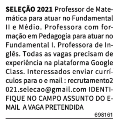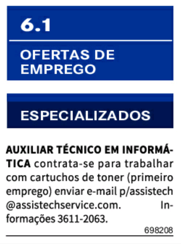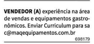 Jornal Acrítica Classificados de Empregos do dia 20.03.21 (sábado) Edição 25.139/21 Confira as Oportunidades e Envie seu Currículo. Anúncios 🔰🔰 Jornal Acrítica Classificados de Empregos do dia 20.03.21 (sábado) Edição 25.139/21, Confira as Oportunidades e Envie seu Currículo. **Fonte: Jornal Acrítica. **Fonte: Jornal Acrítica. Related Posts Oportunidades de Carreira na Daimler AG (Mercedes-Benz Group): Vagas, Benefícios e Desenvolvimento Profissional Como se Candidatar às Vagas de Emprego na Daimler AG (Mercedes-Benz Group) Por Que Trabalhar na Apple: Oportunidades de Carreira, Benefícios e Cultura de Inovação anteriorEstamos fazendo seleção para diversas funções:próximoConsultora de Vendas/Engenheiro (a) Civil/Comprador (a)/Planejador.
