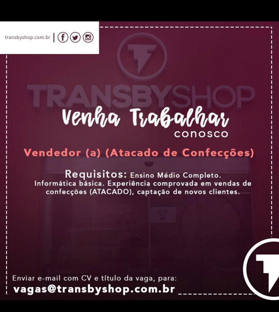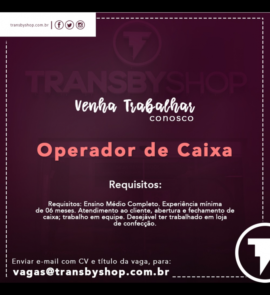 Lojas Transbyshop está recrutando novos profissionais para compor seu quadro de funcionários: