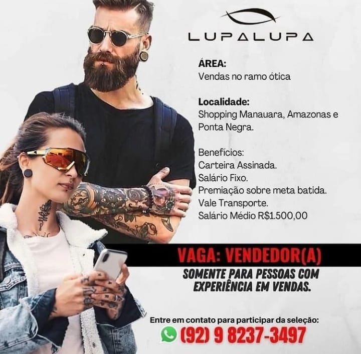 Lupa lupa está recrutando novos profissionais para compor seu quadro de funcionários. – Emprego Day – AM