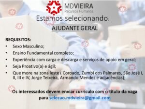 MD VIEIRA ESTÁ RECRUTANDO NOVOS PROFISSIONAIS: – Emprego Day – AM