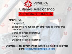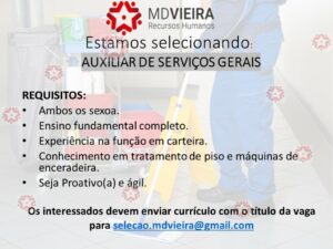 MD VIEIRA ESTÁ RECRUTANDO NOVOS PROFISSIONAIS: