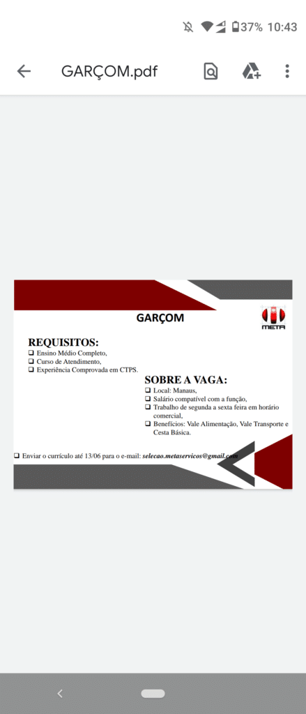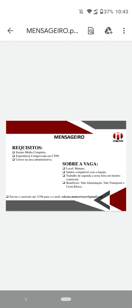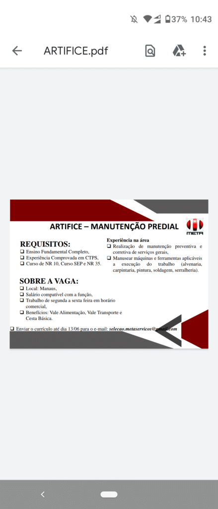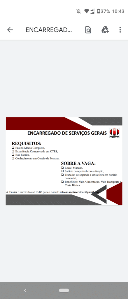 Mais informações sobre a vaga, somente por e-mail com os contratantes. Boa sorte !!!🍀