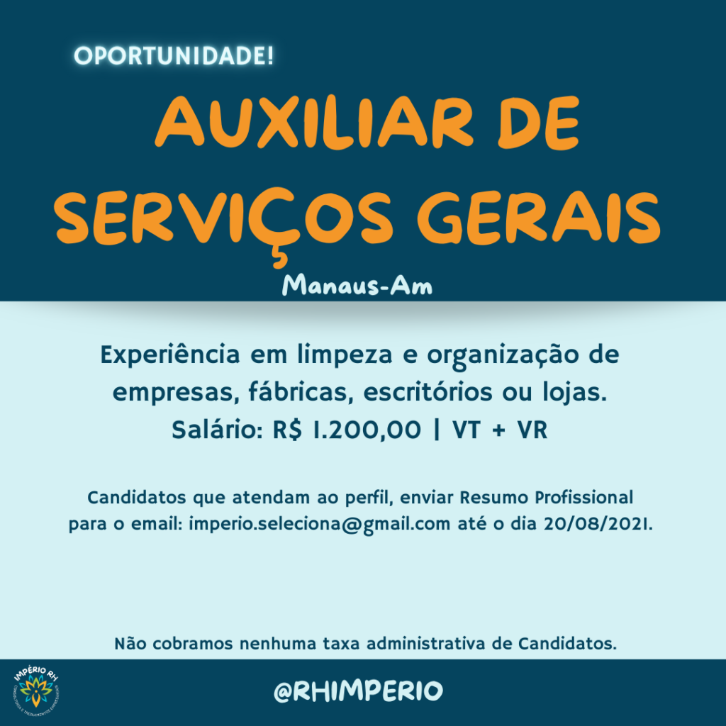 Motoboy/ Jovem aprendiz/ Técnico em refrigeração/ Vendedor/ Auxiliar administrativo/ Assistente de RH e Auxiliar de serviços gerais. Anúncios Related Posts 20 Vagas de Emprego Fáceis de Conseguir na Europa em Como Se Inscrever nas Vagas e Dicas para Aumentar Suas Chances de Ser Contratado na Europa Como se Registrar em Sites Internacionais que Pagam em Dólar ou Euro: Guia Completo para Iniciar Sua Renda Global anteriorAuxiliar de logística/ Controlador de acesso/ Auxiliar de limpeza/ Técnico de manutenção predial/ Coordenador de logística e Técnico em segurança do trabalho.próximoEmpresa Bike Norte Fabricacao de Bicicletas S/A está recrutando profissionais para compor seu quadro de funcionários!!!