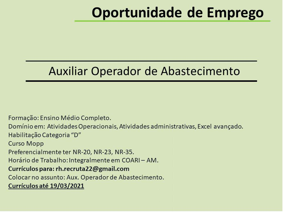 o nome do cargo no titulo do e-mail. Favor informar a pretensão salarial, e-mails sem essa informação serão desconsiderados