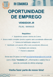 OCRIM ESTÁ RECRUTANDO PROFISSIONAIS PARA: – Emprego Day – AM