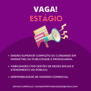 As vagas anunciadas e disponibilizadas neste site são repassadas por responsabilidade da empresa ou representante do RH. Não possuímos quaisquer vínculos com a empresa ou o anunciante. Temos o único objetivo de repassar para a população o benefício de visitar gratuitamente o nosso site, com o intuito de alcançarem o tão sonhado emprego.