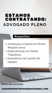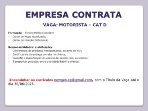 As vagas anunciadas e disponibilizadas neste site são repassadas por responsabilidade da empresa ou representante do RH. Não possuímos quaisquer vínculos com a empresa ou o anunciante. Temos o único objetivo de repassar para a população o benefício de visitar gratuitamente o nosso site, com o intuito de alcançarem o tão sonhado emprego.
