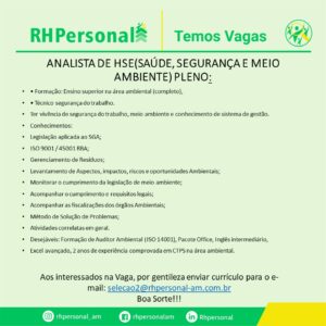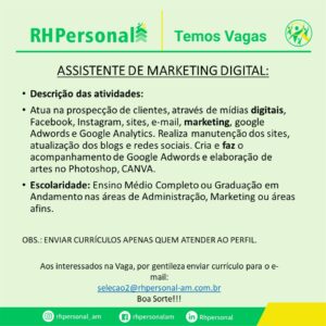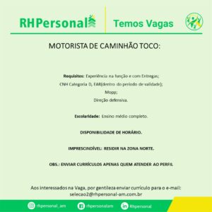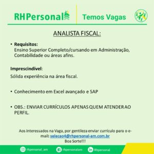 PERSONAL RECURSOS HUMANOS ESTÁ RECRUTANDO NOVOS PROFISSIONAIS PARA: – Emprego Day – AM