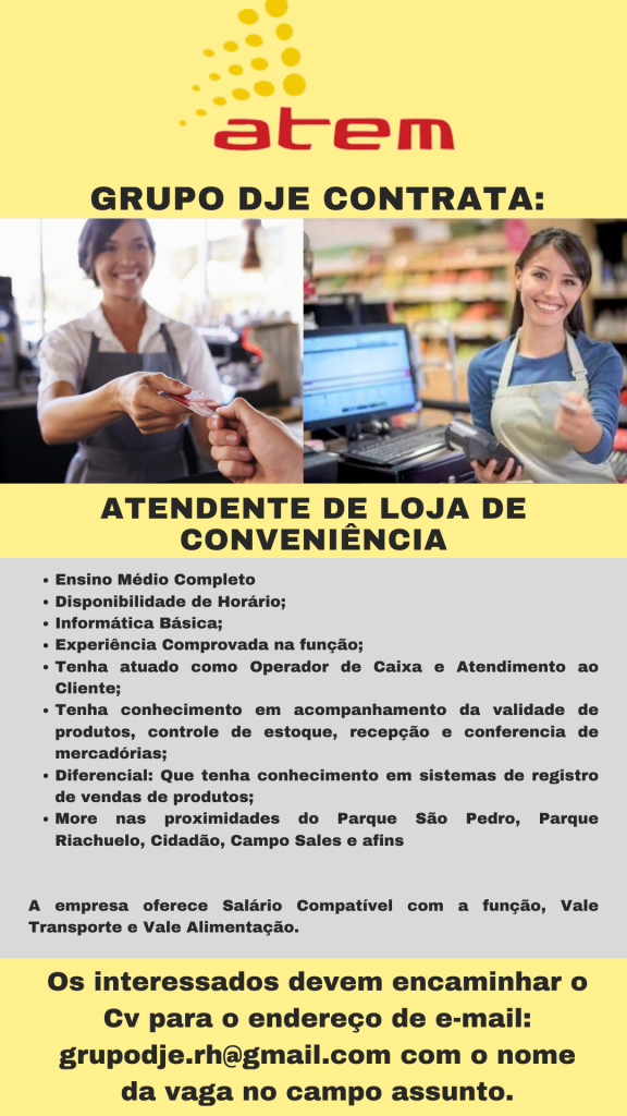 ATENDENTE DE LOJA DE CONVENIÊNCIA
