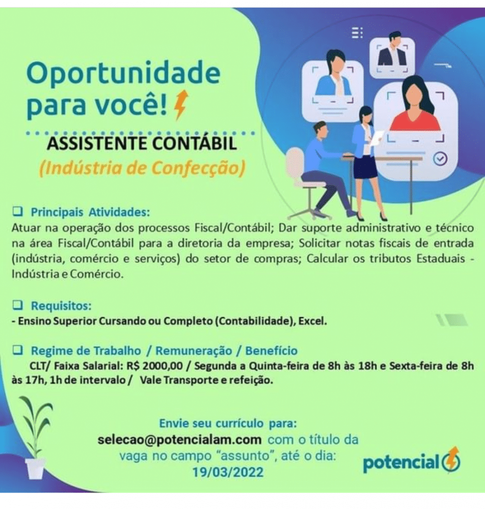 POTENCIAL RH ESTÁ FAZENDO SELEÇÃO PARA ÁREA CONTÁBIL. – Emprego Day – AM